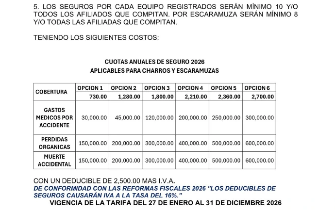 Tabla de Costos de Seguros 2026